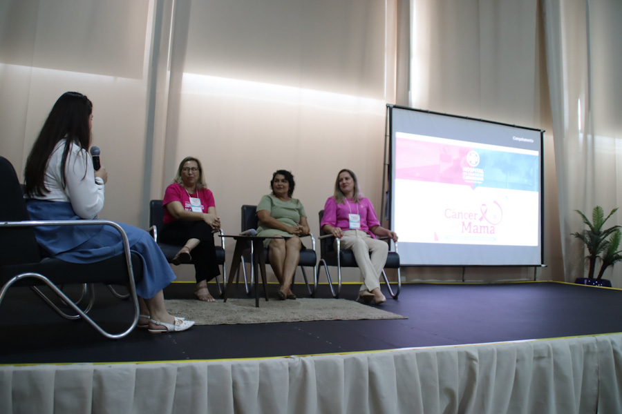 Ao final, os participantes puderam tirar dúvidas nas rodas de conversas com os palestrantes e, para fechar o evento com chave de ouro, foi realizado bate-papo emocionante com pacientes que passaram pelo tratamento oncológico no HCC, reforçando a importância da escuta, do acolhimento e da troca de experiências no processo de enfrentamento e superação do câncer de mama.