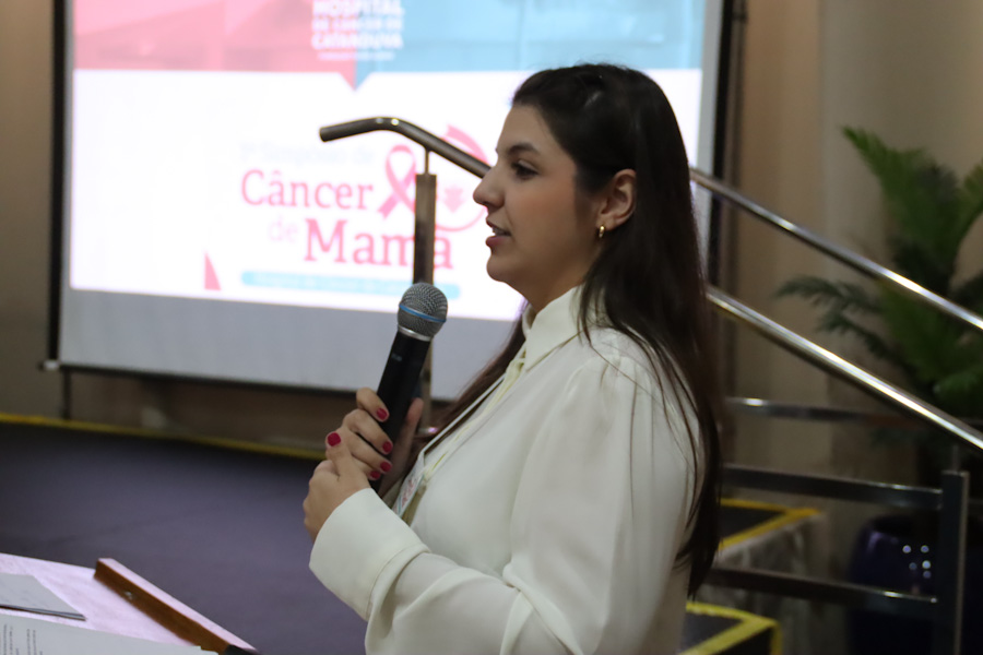 Durante o simpósio, profissionais compartilharam seus conhecimentos sobre os avanços no diagnóstico e tratamento, além de reflexões sobre o cuidado integral e humanizado às pacientes. Os palestrantes foram a Enf. Dra. Lívia Barrionuevo El Hetti Fuentes, Dr. Eduardo Rogério Malaquias Chagas (mastologista), Dra. Camila Brambilla de Souza (oncologista), Dr. Néris José Rodrigues de Oliveira (radiooncologista), Dr. Emil Tannous Elias (cirurgião plástico) e a Psicóloga Esp. Giulia di Orlando Cagnazzo.