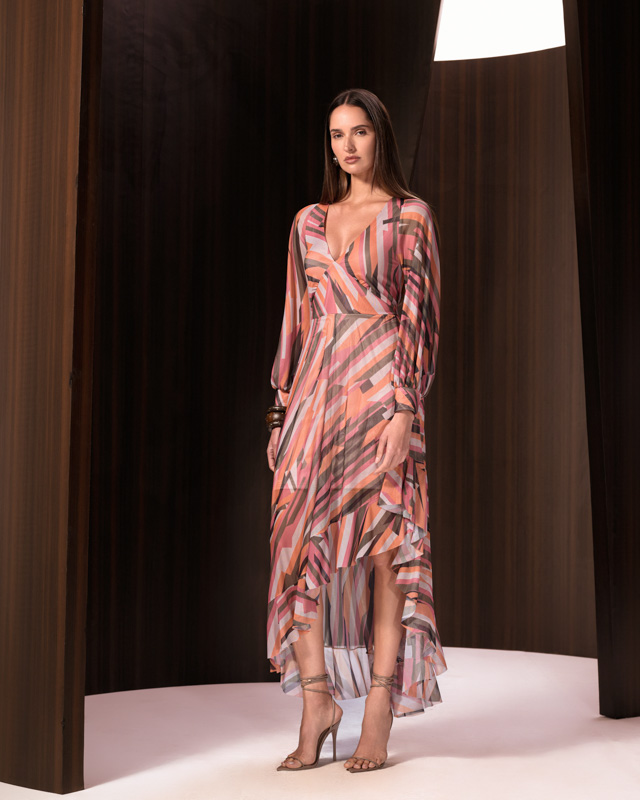 “Cada look é pensado como uma arte única, onde o corpo se transforma na própria moldura da obra de arte. A coleção propõe ainda o conceito de peças mutáveis que se transformam através do uso, da interpretação e do movimento, reforçando o ideal de consumo consciente e da criação de produtos que se sustentam ao longo do ano”, conta Karla Thibau, porta-voz da marca.