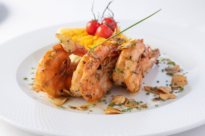 Entre as entradas, o público pode escolher entre a terrine de robalo, servida com redução de limão-siciliano e aspargos selados, ou o tartar de filé mignon, acompanhado de crispy de batata e creme de Grana Padano. Nos pratos principais, o menu apresenta duas opções emblemáticas: o camarão à paulista, servido com risoto de abóbora e tomate confit, ou o tradicional picadinho à Terraço, que chega à mesa com arroz biro-biro, banana empanada e couve crocante.