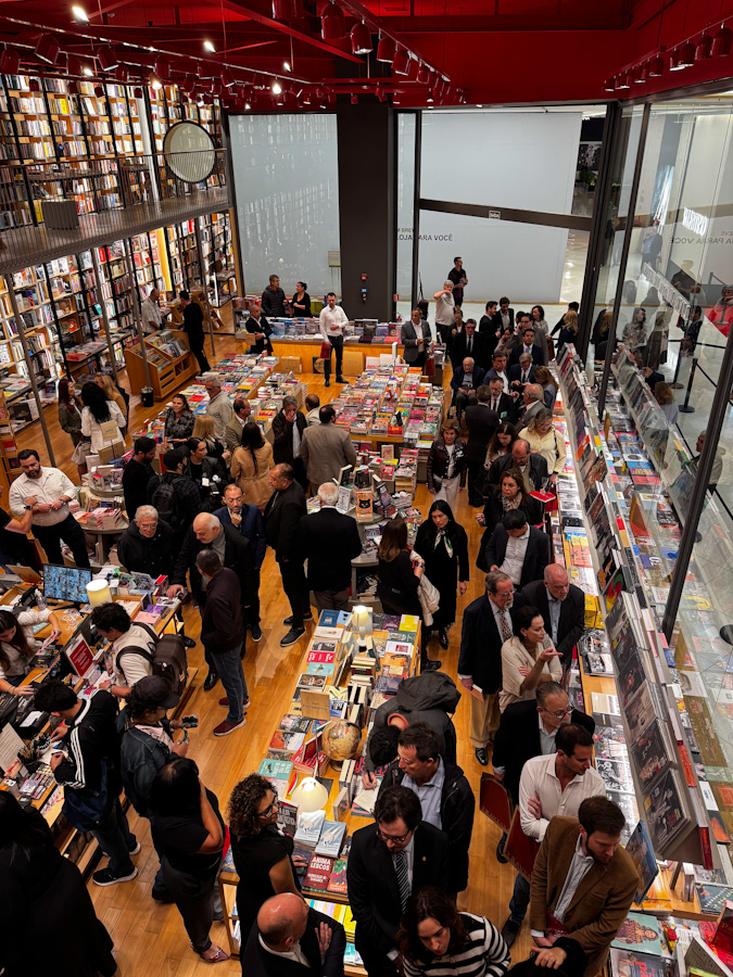 O evento, realizado na Livraria da Travessa do Shopping Iguatemi, contou com a presença de personalidades, como o ex-governador de São Paulo, João Doria.