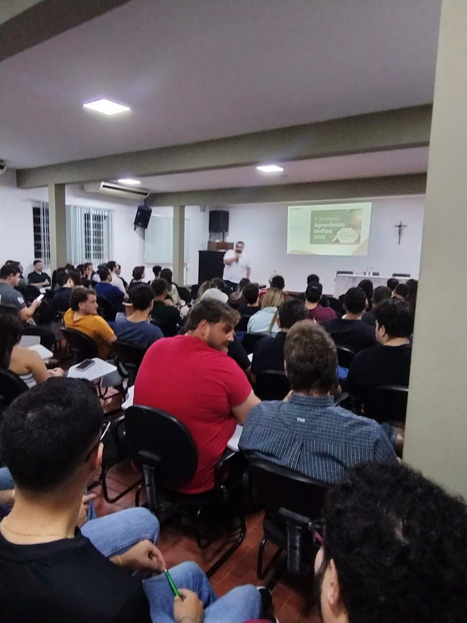 O segundo dia da V Semana Agronômica da UNIFIPA, na quinta-feira (4), teve como tema central os bioinsumos e sua relevância para o futuro da agricultura brasileira. A palestra foi ministrada por José Leonardo Artioli, engenheiro agrônomo e gerente de Desenvolvimento & Marketing Brasil na Biagro.