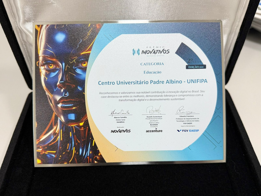 Entre 250 instituições participantes, o curso de Biomedicina do Centro Universitário Padre Albino/UNIFIPA foi reconhecido nacionalmente ao conquistar o 2º lugar no Prêmio Inovativos 2025, promovido pela Fundação Getulio Vargas/FGV. A premiação, realizada em São Paulo, destacou projetos que se sobressaíram pela implementação de práticas inovadoras e eficazes nas áreas de educação, gestão e desenvolvimento institucional.