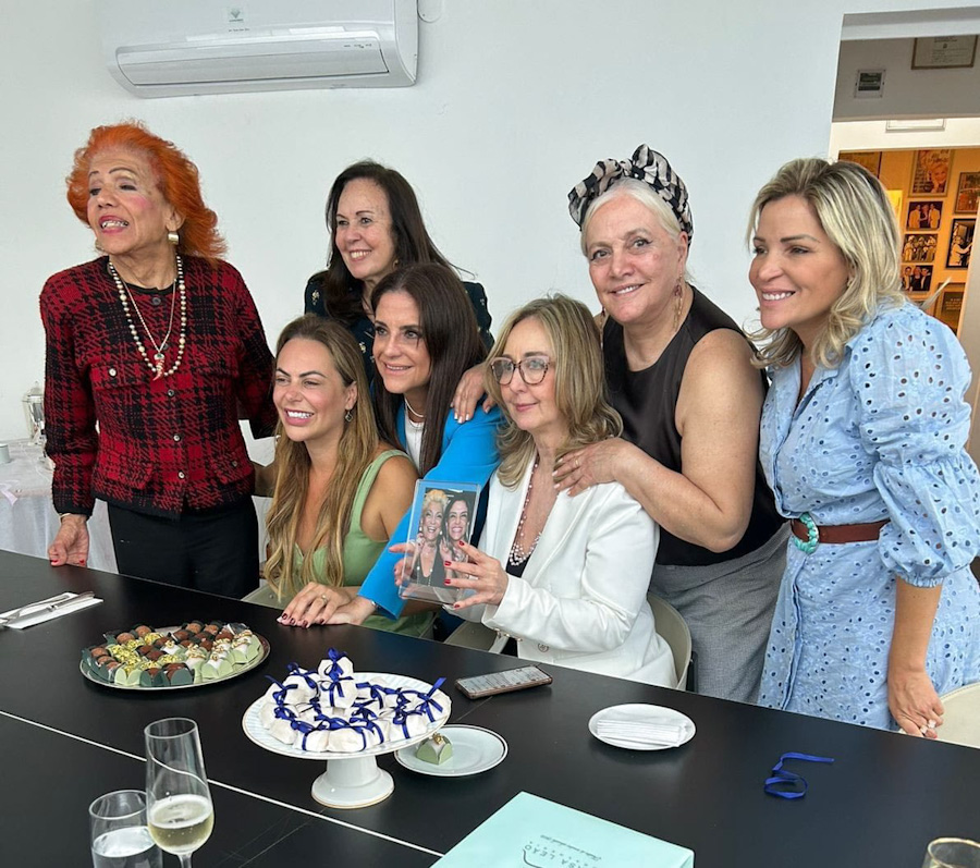A festa foi carinhosamente organizada pela empresária de joias Lydia Sayeg, que preparou uma homenagem à altura da amiga, reunindo charme, sofisticação e afeto em cada detalhe. O cenário não poderia ser mais simbólico: o Espaço Hebe Camargo, que abriga o acervo da eterna apresentadora e respira elegância em sua atmosfera inspiradora.