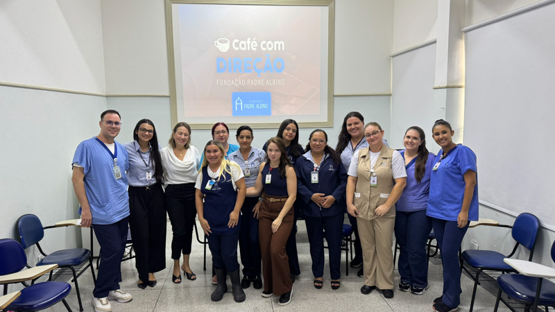 A Diretoria Executiva da Fundação Padre Albino promoveu, entre os dias 03 de fevereiro e 05 deste mês de março, oito edições do Café com Direção, iniciativa criada com o objetivo de fortalecer a comunicação direta entre a gestão da instituição e seus colaboradores. Os encontros foram realizados em diferentes unidades da Fundação, entre elas o Hospital Padre Albino, Hospital Emílio Carlos, Padre Albino Saúde, Ambulatório Médico de Especialidades – AME Catanduva, sob gestão da FPA, UNIFIPA, Centro Cultural e Histórico Padre Albino e Recanto Monsenhor Albino, reunindo profissionais de diversos setores para momento de diálogo e troca de experiências.