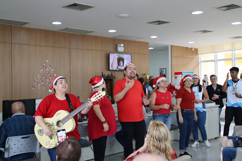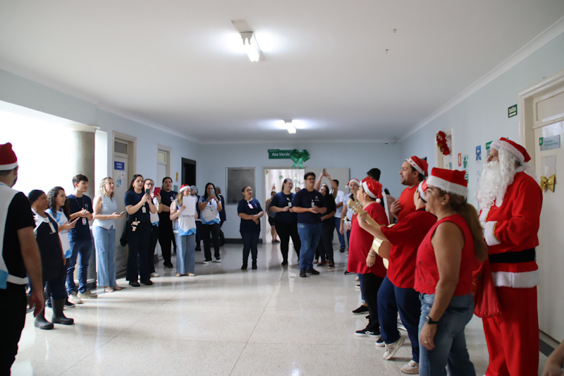 Realizada anualmente há mais de cinco anos, a iniciativa também teve a presença do Papai Noel e a distribuição de balas. Segundo os organizadores, a ação tem como objetivo levar alegria neste período natalino e comoveu pacientes, acompanhantes e colaboradores. “Momentos como esse ajudam a ressignificar a vivência hospitalar, trazendo conforto emocional, esperança e acolhimento tanto para os pacientes quanto para seus familiares”, destacou a psicóloga Vitória Betussi.