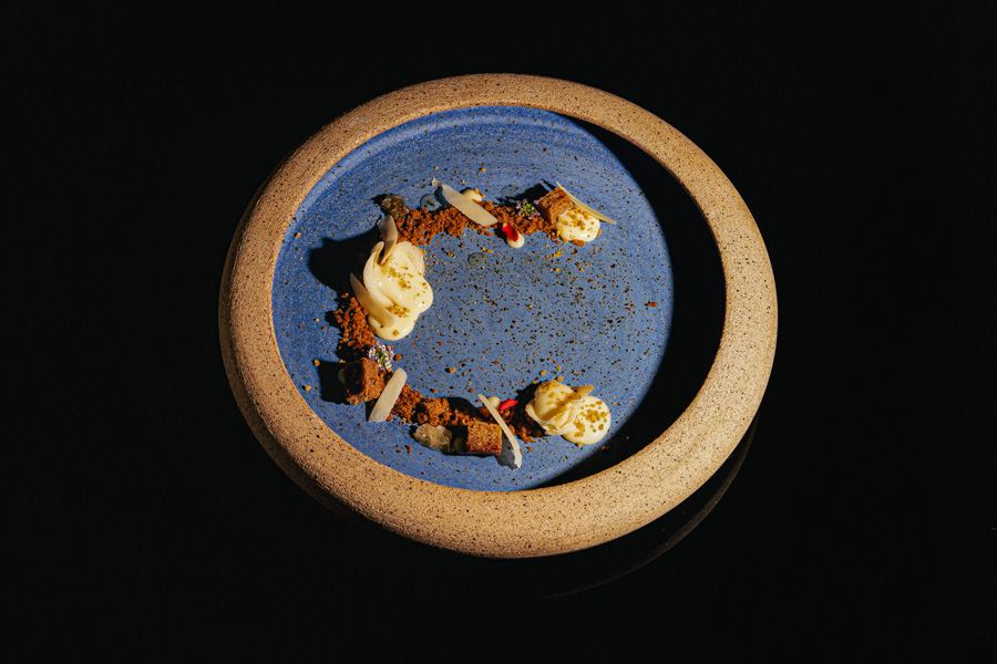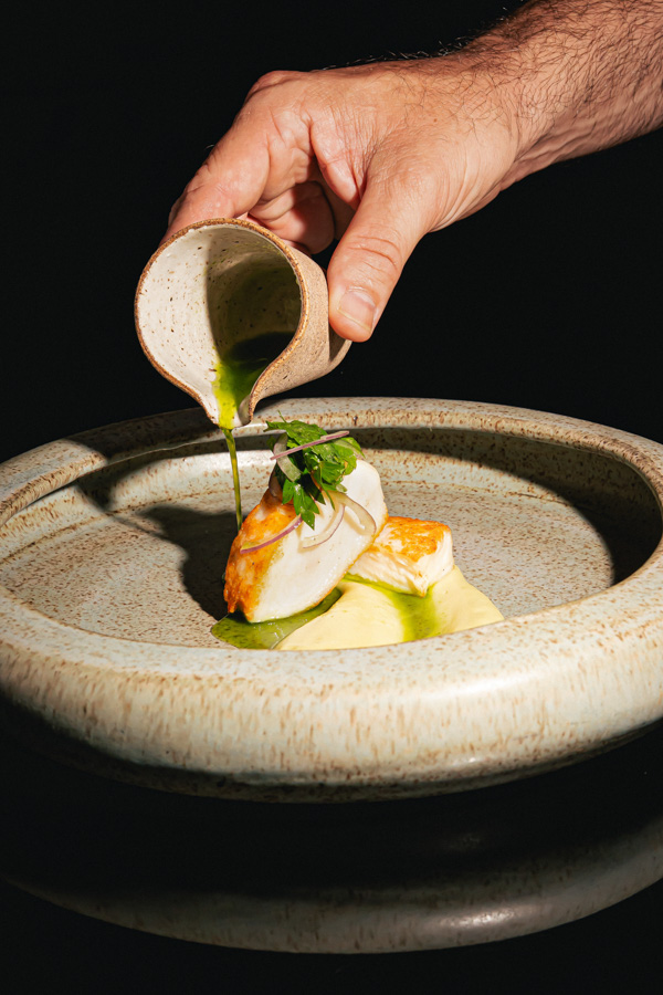 Desde o início de maio, o Canvas Restaurante também conta com uma novidade em seu espaço: a exposição fotográfica “Escolhas”. Com a curadoria do artista plástico Rafa Balseiros, a mostra conta com 20 fotos que reúnem pratos, detalhes da produção de ingredientes e produtores locais. Há retratos como o da ceramista Bárbara Agostini, que criou o novo enxoval do restaurante, e como o da Queijaria Rima, que fornece laticínios, como a coalhada que compõe o couvert da casa (foto).