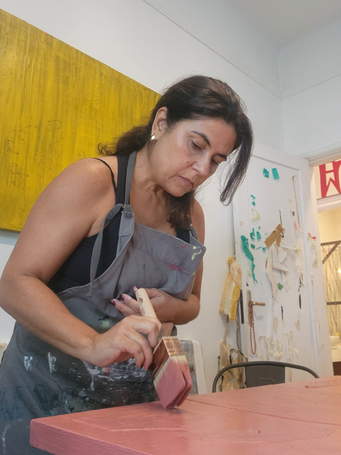 Natural de Campina Grande e radicada no Rio de Janeiro há mais de três décadas, Morgana Souto Maior constrói sua obra a partir de memórias afetivas e inquietações pessoais. Após uma virada de vida que a levou do mundo corporativo às artes visuais, estudou Arquitetura, Design e Marketing Cultural, encontrando no Parque Lage e na artista Maria do Carmo Secco suas principais referências. Sua produção é marcada pela liberdade formal, pelo simbolismo e por um forte senso de pertencimento.