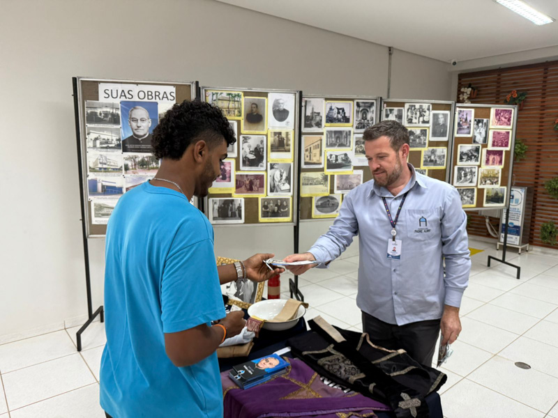 O “Museu Itinerante”, atividade da XXXIV Semana Monsenhor Albino, reúne fotografias, vestes e objetos que marcaram a trajetória de vida de Padre Albino, figura central na história da Fundação Padre Albino e de suas instituições.