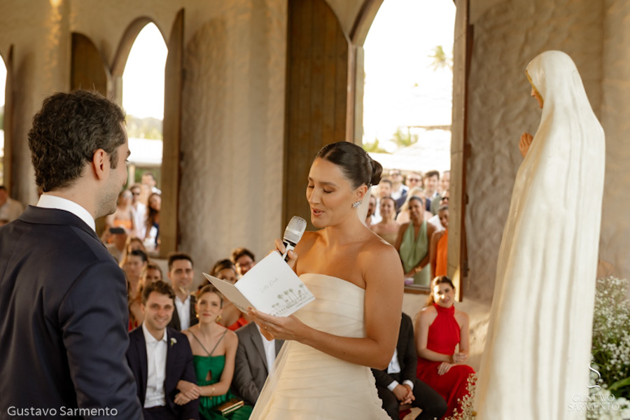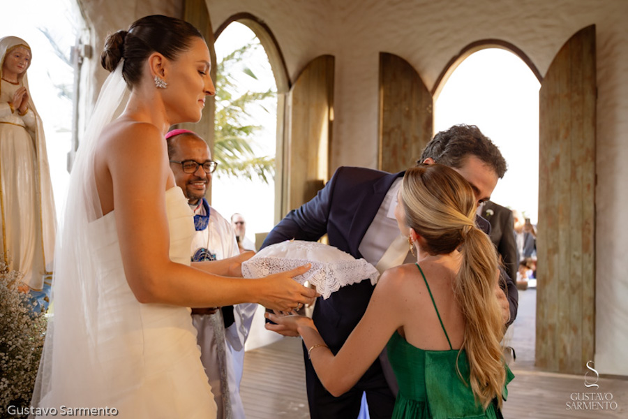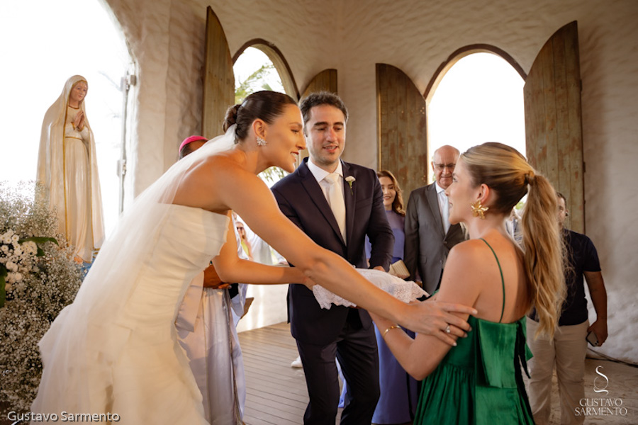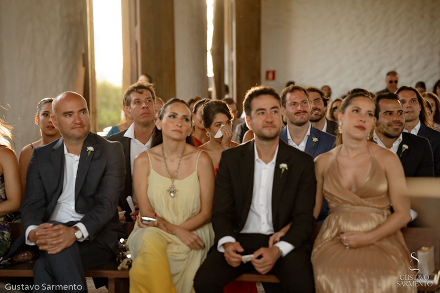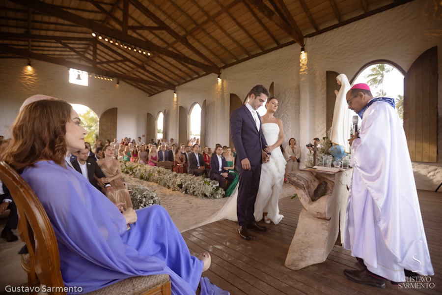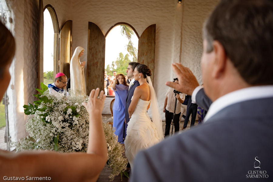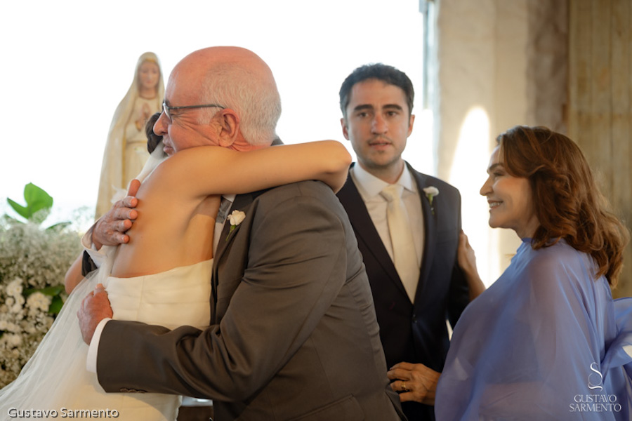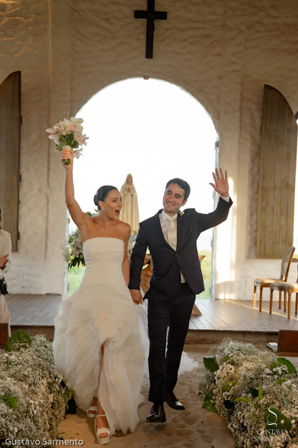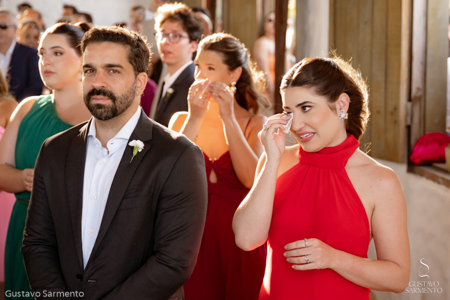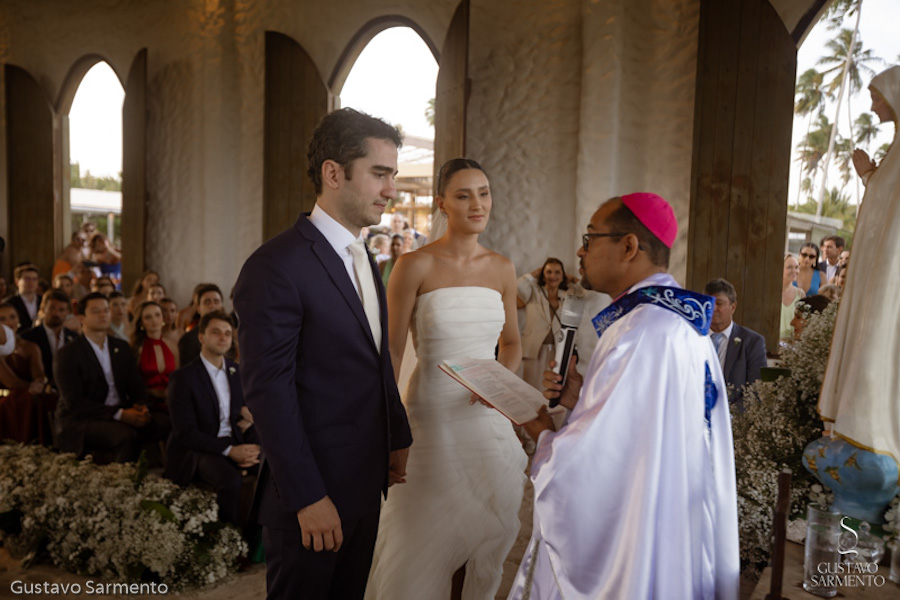 Encantadores, a dama Serena Nechar Sampaio e o pajem João Paulo Cansado Dib Ribeiro trouxeram doçura e graça ao cortejo. Os noivos deixaram todos boquiabertos: Duda, esplendorosa em modelo assinado pela renomada estilista Vera Wang, de São Paulo; Bernardo, impecável e elegantérrimo em terno Ricardo Almeida. Beleza, estilo e emoção se fundiram num momento que ficará para sempre na memória.
