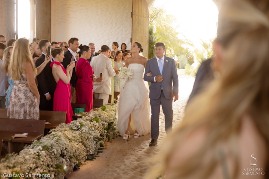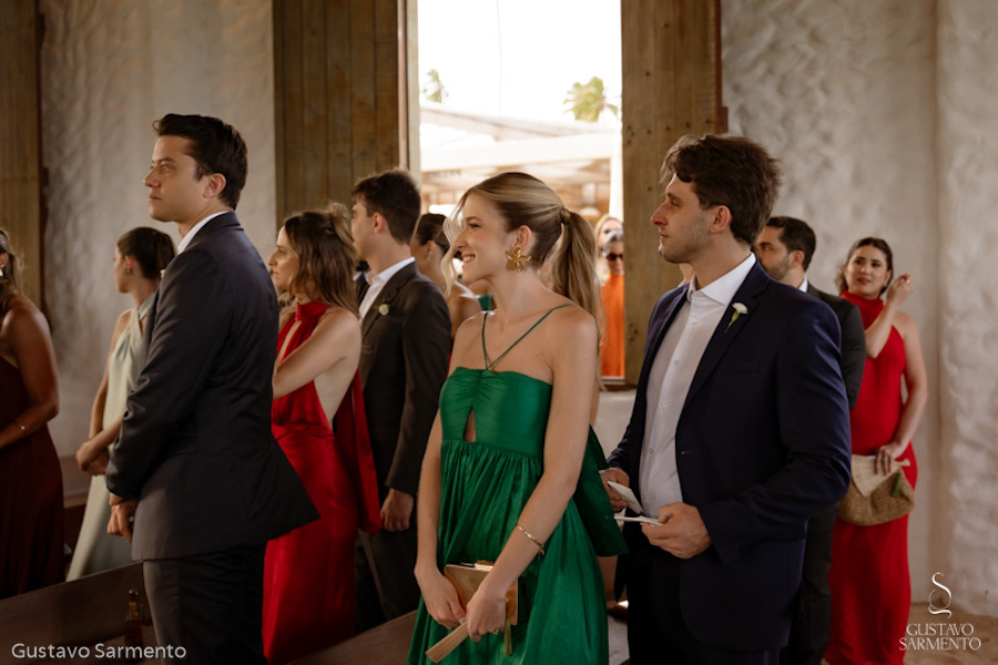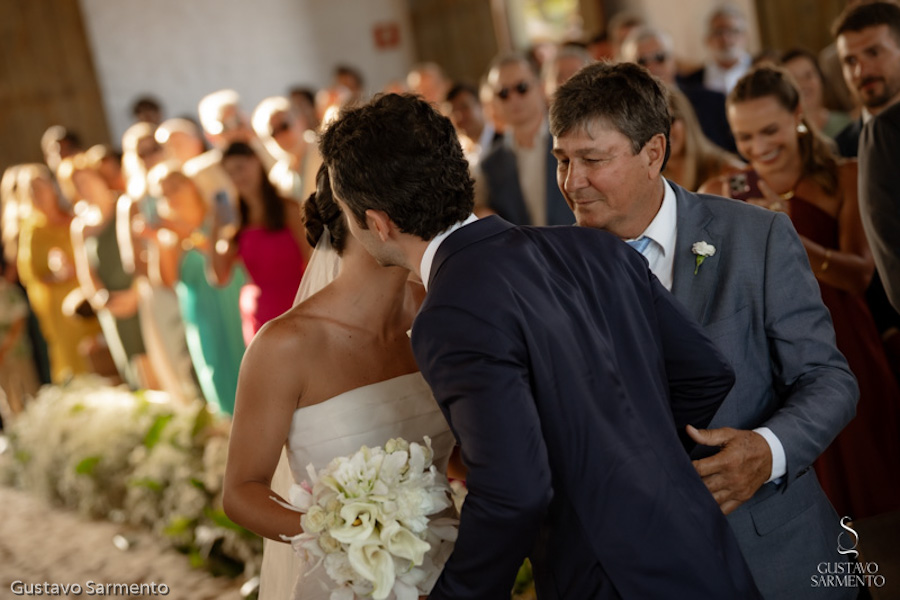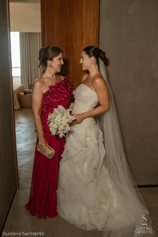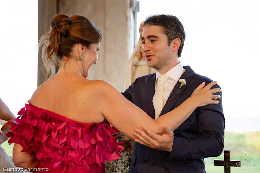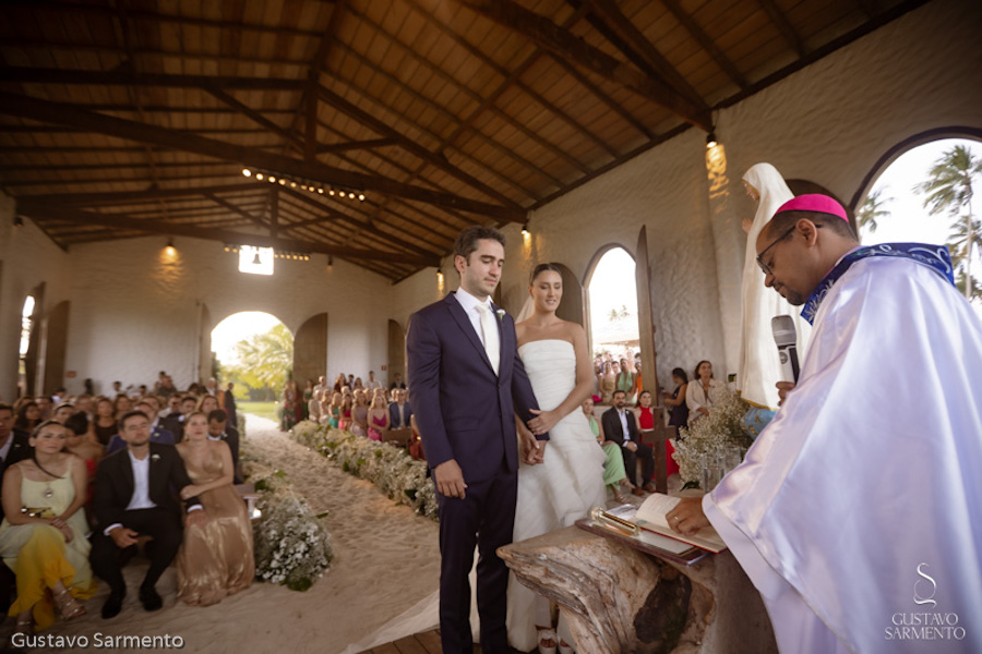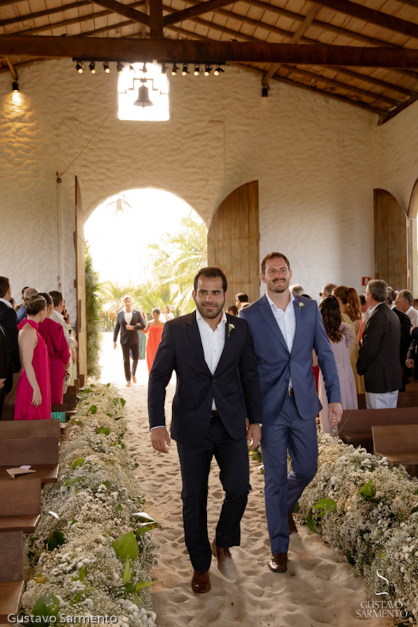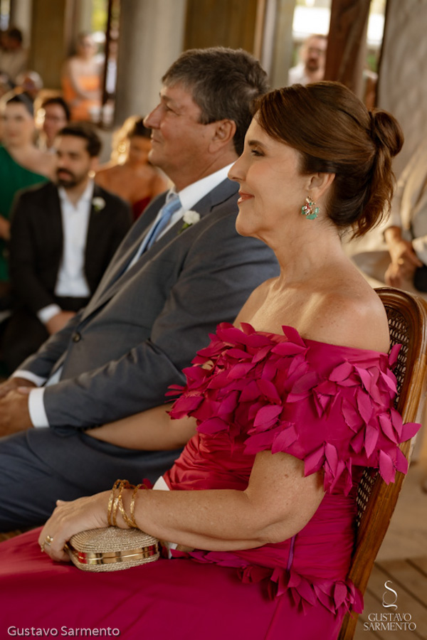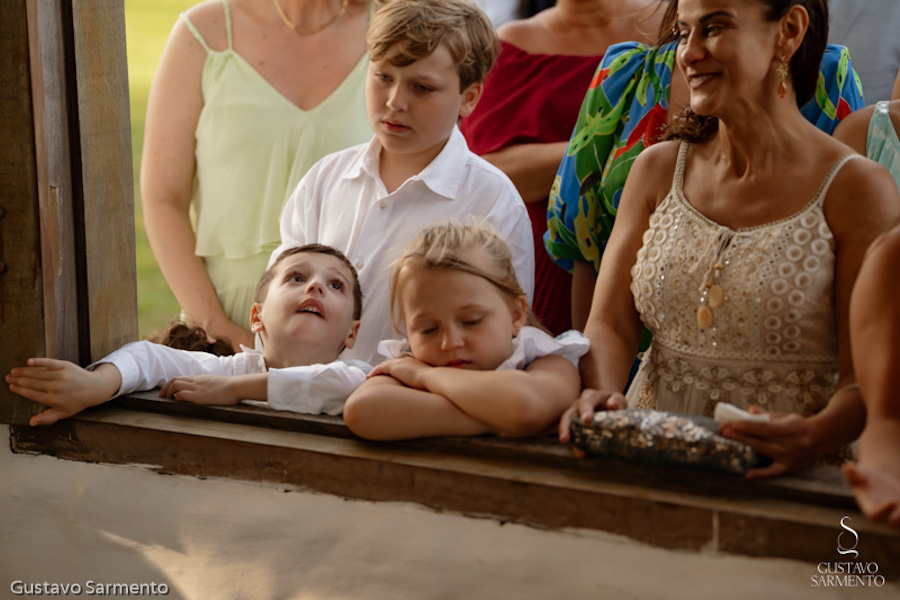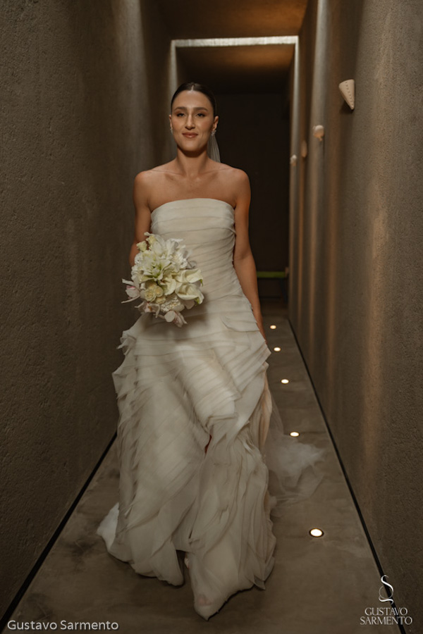 Encantadores, a dama Serena Nechar Sampaio e o pajem João Paulo Cansado Dib Ribeiro trouxeram doçura e graça ao cortejo. Os noivos deixaram todos boquiabertos: Duda, esplendorosa em modelo assinado pela renomada estilista Vera Wang, de São Paulo; Bernardo, impecável e elegantérrimo em terno Ricardo Almeida. Beleza, estilo e emoção se fundiram num momento que ficará para sempre na memória.