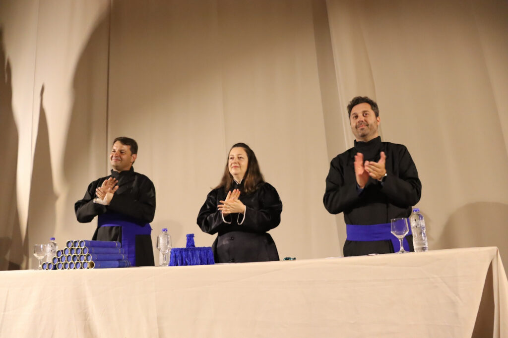 A cerimônia contou ainda com a presença dos docentes Profa. Dra. Maria Izabela Ferreira, Prof. Dr. Diego Scacalossi Voltan, Prof. Me. José Claudinei Cordeiro, Profa. Ma. Juliana Guidi Magalhães, Prof. Dr. Manzélio Cavazzana Júnior e Prof. Dr. Nilson Mozas Olivares.