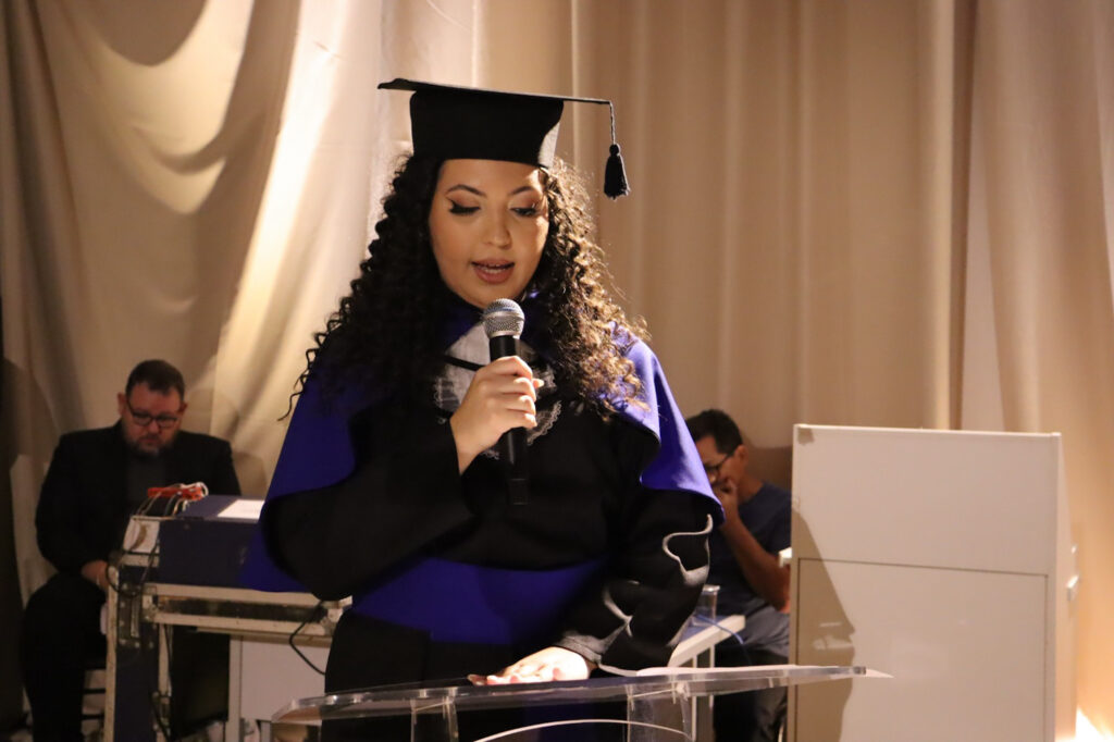 A mesa solene foi presidida pela Profa. Dra. Andréia de Haro Moreno, pró-reitora de Ensino de Graduação, Extensão, Assuntos Comunitários e EAD, que representou o reitor da UNIFIPA, Dr. Nelson Jimenes, e a vice-reitora, Cristiane Procópio de Oliveira. Também compuseram a mesa o coordenador do curso, Prof. Dr. João Paulo Ferreira, homenageado como paraninfo da turma, e o patrono, Prof. Dr. Gustavo Antônio Xavier Gerlach.