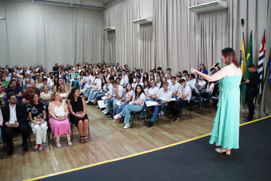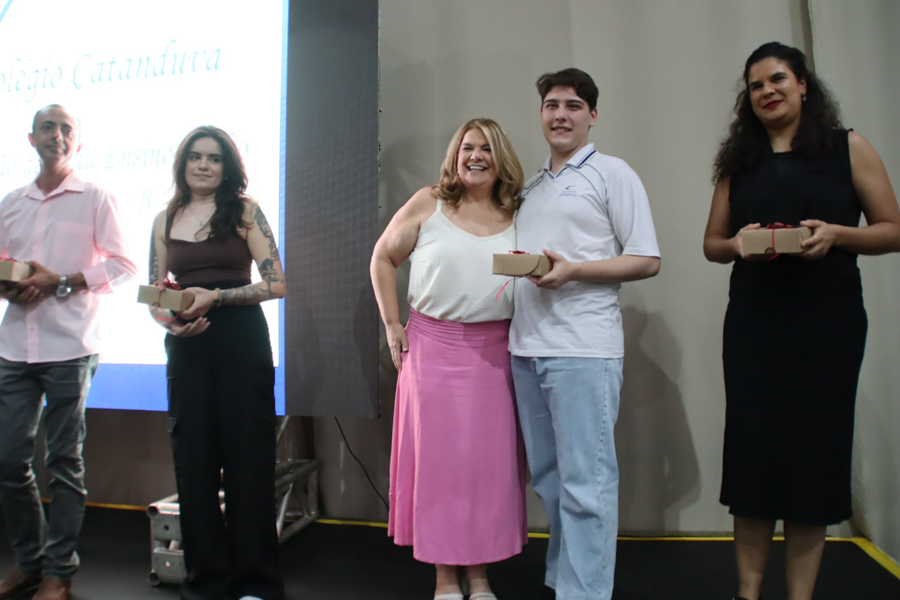 A cerimônia foi conduzida pela diretora do Colégio, Profa. Ma. Fabiana Fiorim Checconi, que destacou o empenho dos alunos ao longo do ano letivo e agradeceu o apoio das famílias e ressaltou a missão institucional da escola. “O Colégio Catanduva tem como missão contribuir para a formação dos alunos, promovendo o desenvolvimento pessoal, intelectual e cultural. Reforçamos também os valores da Fundação Padre Albino, como comprometimento, profissionalismo, trabalho em equipe e transparência. Hoje celebramos o sentimento de missão cumprida e o aprendizado adquirido, que acompanharão os alunos nos próximos desafios acadêmicos”, afirmou.