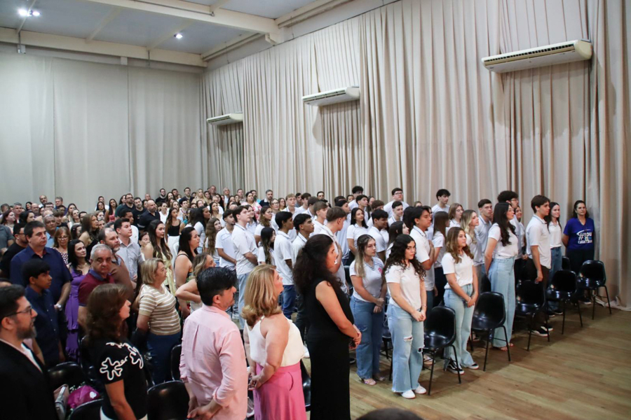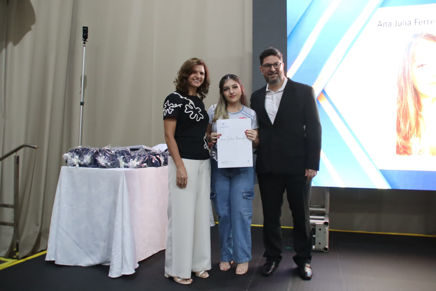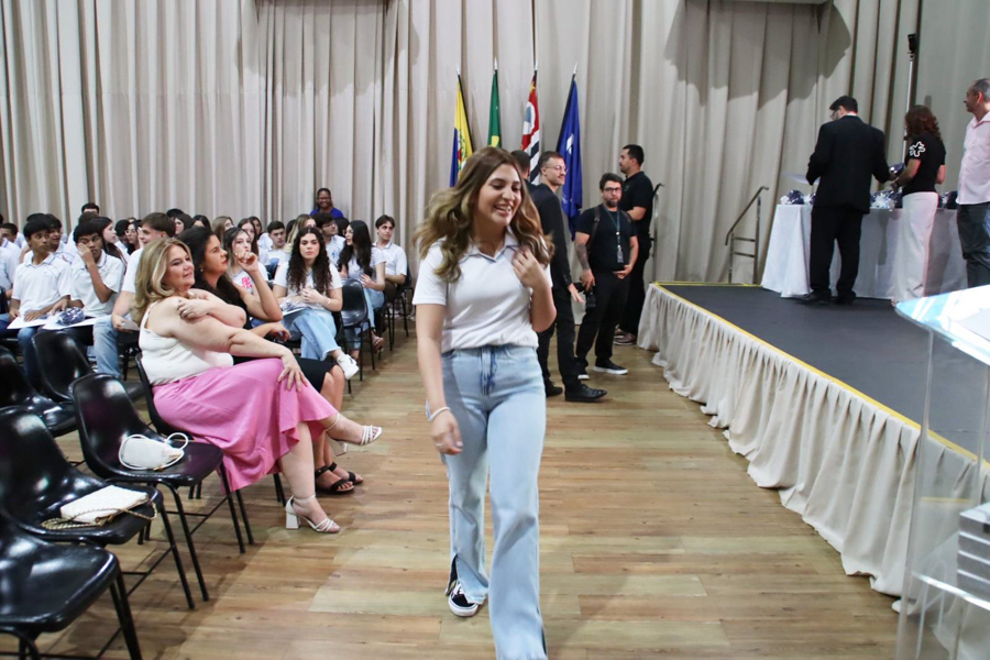 A estudante Isabelle da Silva Santos representou os formandos em discurso que rememorou momentos significativos vividos pela turma ao longo da trajetória escolar. “Lembramos de quem nos guiou, de quem acreditou no nosso potencial, mesmo quando a gente duvidava de nós mesmos. Lembramos dos conselhos, das broncas necessárias, das risadas no meio da aula e daquele olhar de ‘vai dar certo’ que só os professores têm”, declarou.