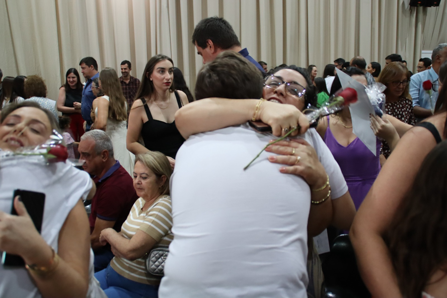 Após a entrega dos certificados os formandos presentearam seus professores com lembranças e entregaram botões de rosa aos familiares, gesto que simbolizou gratidão e encerrou o evento de maneira afetiva.