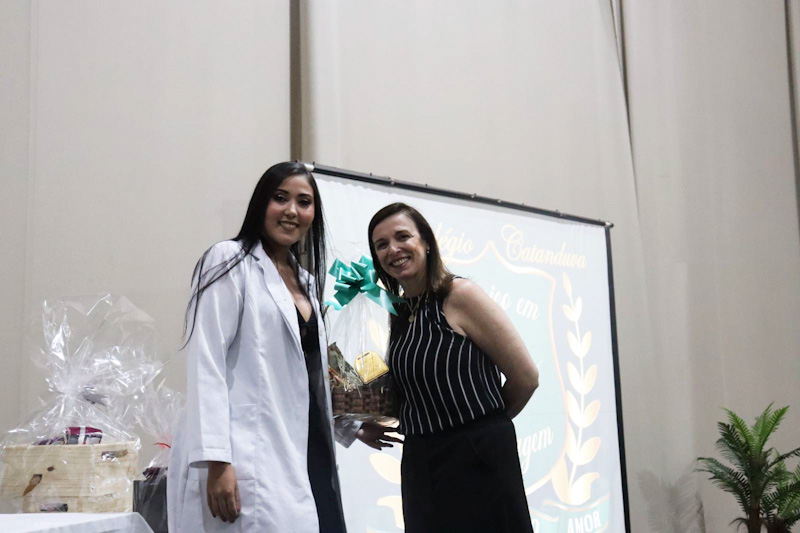 A solenidade foi conduzida pela diretora do Colégio Catanduva, Profa. Ma. Fabiana Fiorim Checconi, com as presenças da coordenadora do curso de Enfermagem da Unifipa, Profa. Dra. Luciana Braz de Oliveira Paes; da coordenadora do curso Técnico em Enfermagem, Profa. Ludimila Ferreira da Cruz; e dos convidados especiais, Simone Aparecida Trovó, Fabiana Cristina Miguel, Letícia de Cássia Belchior e Edson Luis Ferreira Barbosa. O professor homenageado pela turma foi o Prof. Diego Henrique de Souza. A madrinha da 9ª turma foi a Profa. Fabiana Cristina Miguel, que participou da entrega dos certificados aos formandos.