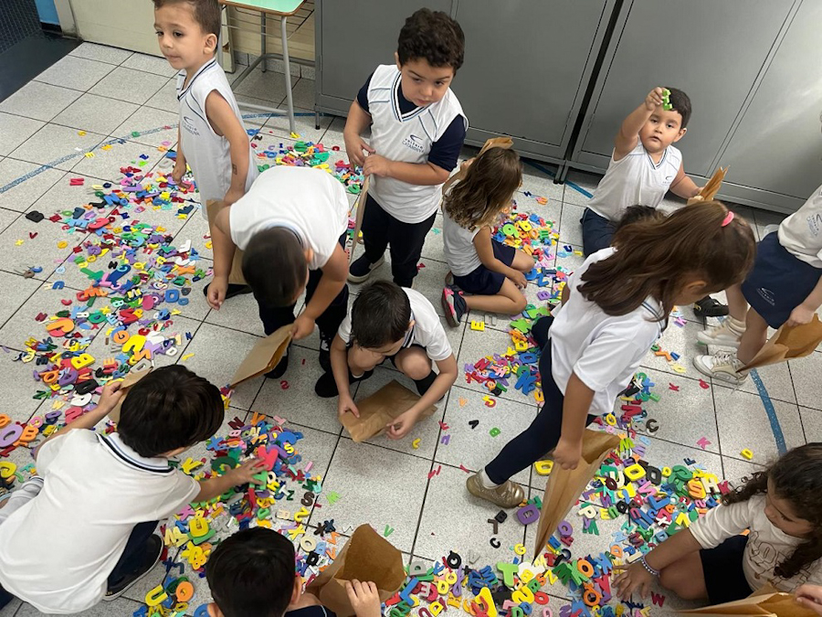 Durante o primeiro semestre, alunos do Pré I do Colégio Catanduva participaram de atividades lúdicas e literárias focadas em “contação de histórias” e no uso do alfabeto móvel. Nessas sessões interagiram com o alfabeto com o objetivo de reconhecer letras, diferenciar vogais de consoantes, relacionar letras aos seus sons e escrever palavras simples e conhecidas.