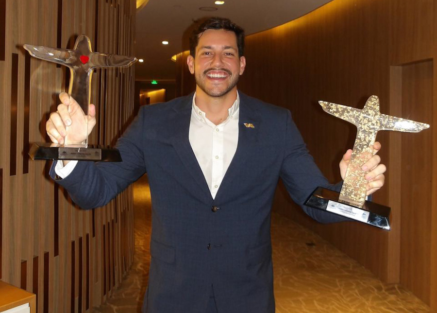O empresário João Mello, diretor dos Hotéis Vilarejo, subiu ao palco duas vezes durante a noite festiva da 20ª edição do prêmio, realizada em 26 de novembro, no Fairmont Rio de Janeiro Copacabana, para receber os troféus de primeiro lugar nas categorias Ação Social e Empreendedorismo.