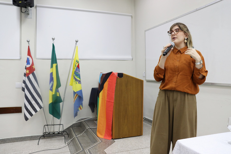 O segundo convidado, Dr. Fábio Soares de Carvalho Sposito, advogado, mestre em Direito Público e Evolução Social, ministrou a palestra “Direitos LGBTQIA+: Avanços e Desafios”. Ele destacou conquistas legais recentes e os obstáculos ainda enfrentados pela comunidade. “Avançamos muito na garantia de direitos para o público LGBT, como a criminalização da homotransfobia, o reconhecimento de direitos previdenciários a casais homoafetivos, o direito ao casamento civil igualitário e a ampliação da Lei Maria da Penha a mulheres trans e travestis. Mas ainda enfrentamos desafios a serem discutidos, como o preconceito estrutural – proibição da transgêneros a frequentarem banheiros com que eles se identificam- e a falta de políticas públicas específicas”, apontou Sposito, que também é especialista em Direitos LGBTQIA+, Família e Sucessões, e vice-coordenador da Comissão da Diversidade Sexual e de Gênero da OAB São José do Rio Preto.