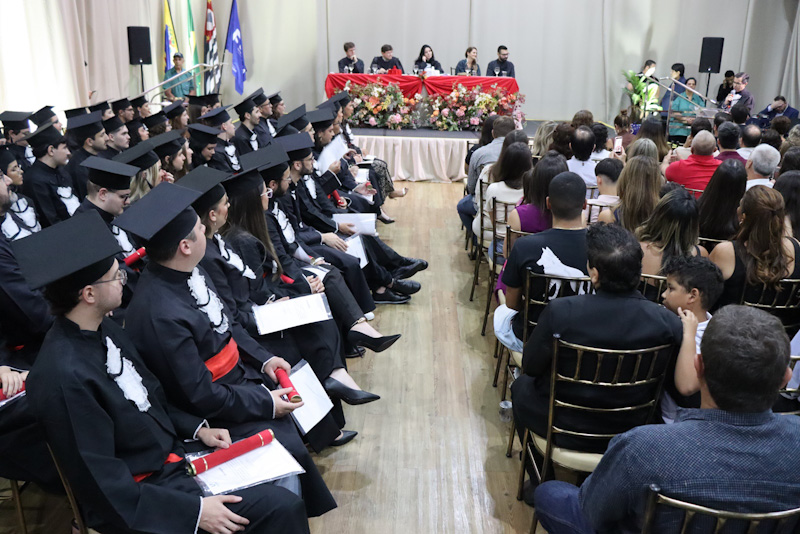 A solenidade foi oficialmente aberta pela vice-reitora, Cristiane Procópio de Oliveira. Em seguida, os formandos prestaram o juramento e receberam o grau de Bacharéis em Direito, sob a presença do coordenador do curso, Prof. Dr. Luís Antônio Rossi, da paraninfa Profa. Ma. Ivana Mussi Gabriel, do Prof. Dr. Álvaro José Haddad de Souza e do patrono da turma, Prof. Dr. Alexandre Fontana Berto, que foi homenageado dando seu nome à Turma.