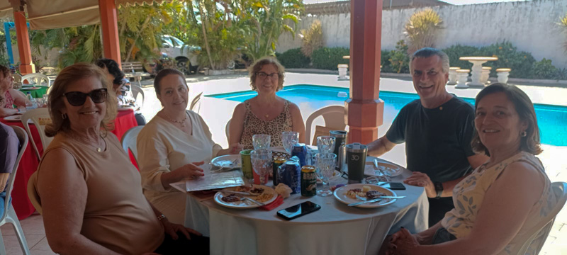 A presença de alguns ex-professores deu ao encontro um toque ainda mais especial: entre risos e lembranças, reviveram momentos de sala de aula, treinos e amizades que ficaram para sempre. Mesmo com participação reduzida de mestres, a emoção foi intensa e genuína. A Chácara Riomar serviu de cenário perfeito — lugar acolhedor onde bons papos e música de qualidade embalavam cada reminiscência.