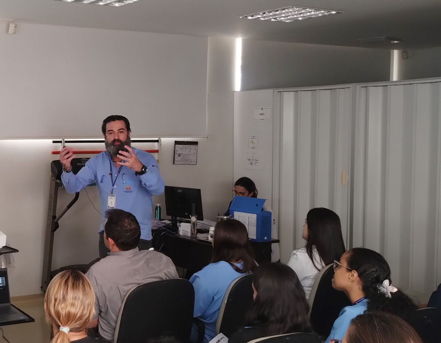Conduzida pelo técnico em Segurança do Trabalho, William Fernandez, a capacitação abordou temas essenciais da rotina assistencial, como o uso correto de EPIs, identificação de riscos, formas de contágio, descarte adequado de materiais e manuseio seguro de resíduos. Também foram reforçadas normas de segurança, entre elas a proibição de adornos — como brincos, anéis e celulares — em áreas críticas, o protocolo de higienização das mãos e as regras para consumo de alimentos e uso de jalecos dentro das unidades.