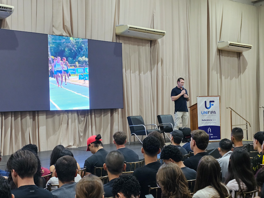 A palestra também teve a presença do treinador do atleta olímpico. Guilherme Salgado, formado em Educação Física pela UNIFIPA em 2004, relembrou o início de sua trajetória na área e a relação construída com Altobeli ao longo dos anos. “Decidi cursar Educação Física porque praticava corrida e tinha muitas dúvidas e curiosidades relacionadas ao treinamento esportivo. Após me formar, trabalhando na equipe de atletismo de Catanduva, tive a oportunidade de conhecê-lo. Crescemos juntos no esporte e hoje sou grato a Deus por ter conseguido atuar e conduzi-lo até o alto rendimento. Depois, ele seguiu evoluindo em outros clubes até chegar à Olimpíada”, ressaltou.