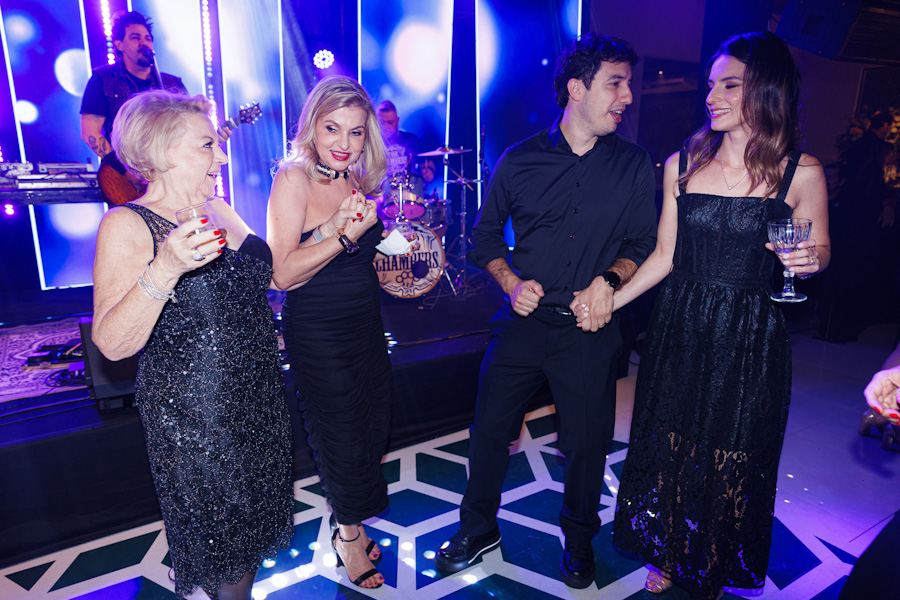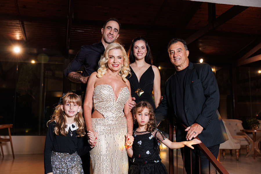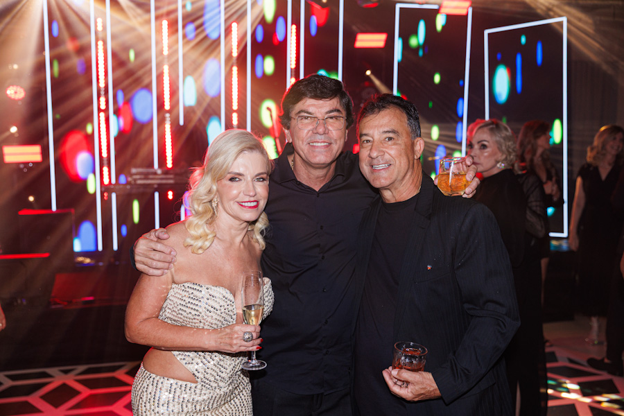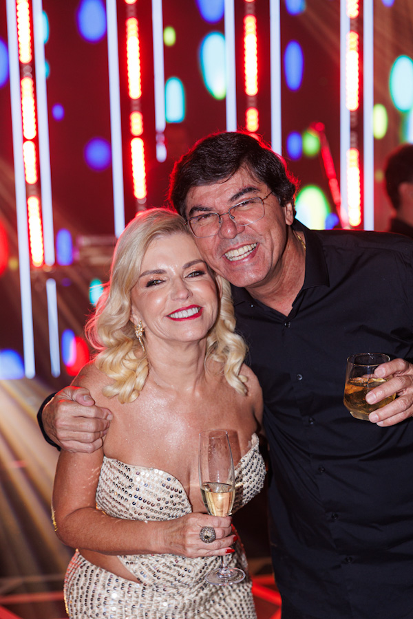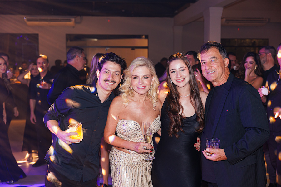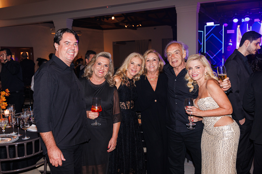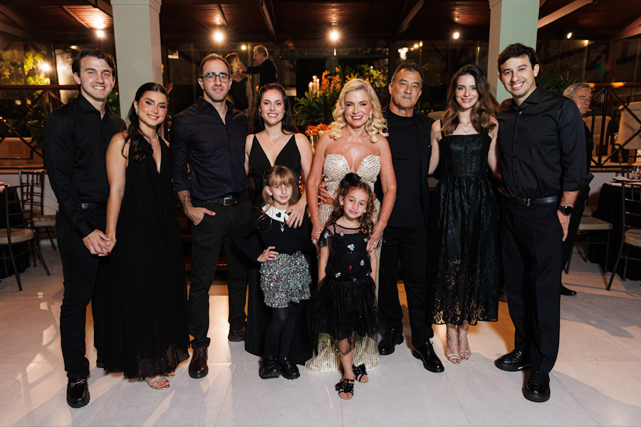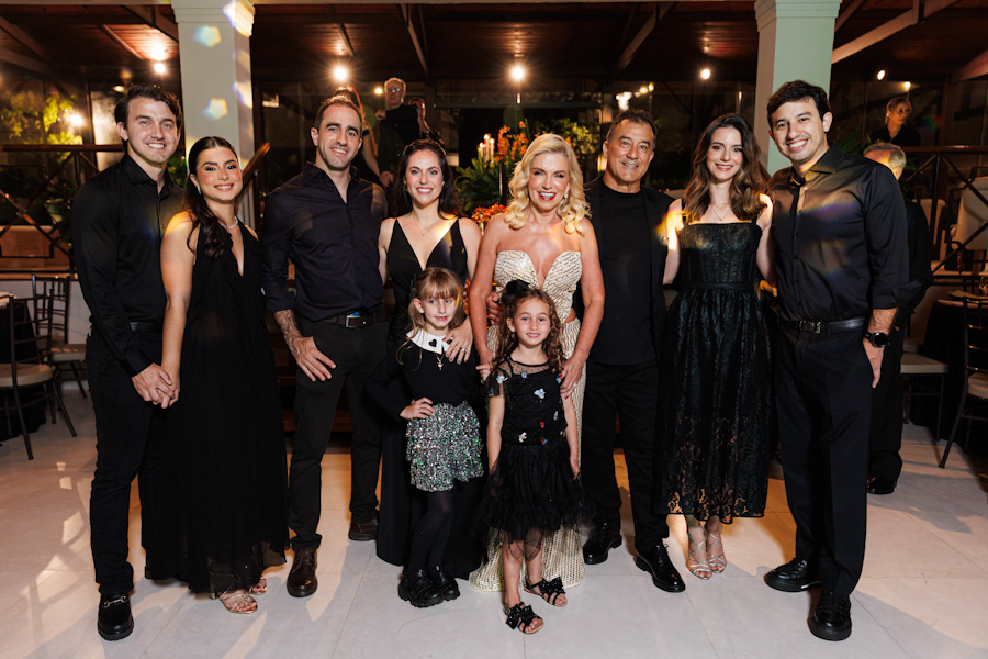 Que noite inesquecível! Para celebrar os 60 e os 64 anos, Fabiana Soubhia Sanches e José Antonio Sanches — o querido Xibil — reuniram família e amigos que retribuíram convites numa festa memorável. Todos atenderam ao elegante convite All Black, e Fabiana brilhou em um deslumbrante tomara-que-caia de paetês da grife de Florença, roubando olhares e corações.