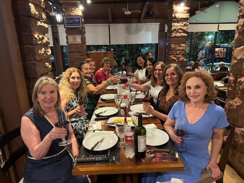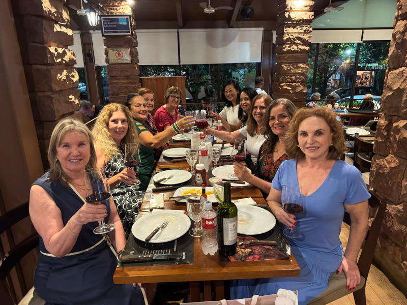 Desta vez a festa foi em grupo: juntamo-nos no acolhedor Castellana Steakhouse com amigas queridas — Denise Busnardo Bandeira, Rosana Prando, Silmara Madalosso dos Santos, Cláudia de Carvalho Cosmo, Marly e Evany Mei, Silvia Fujiko Nakamoto e Vera Baldini — e a energia foi contagiante. Simplicidade e afeto marcaram a noite, que se transformou em memória afetiva imediata: conversas animadas, risadas sinceras e aquele clima de intimidade entre amigas que só o tempo constrói.