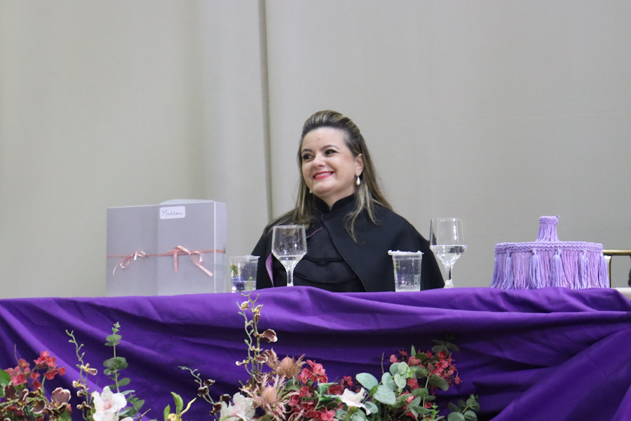 Em seu pronunciamento, a coordenadora do curso, Profa. Dra. Maria Silvia Azarite Salomão, destacou os desafios enfrentados ao longo da formação acadêmica e ressaltou o compromisso da instituição com uma formação universitária de referência, voltada ao desenvolvimento profissional e humano dos futuros pedagogos.