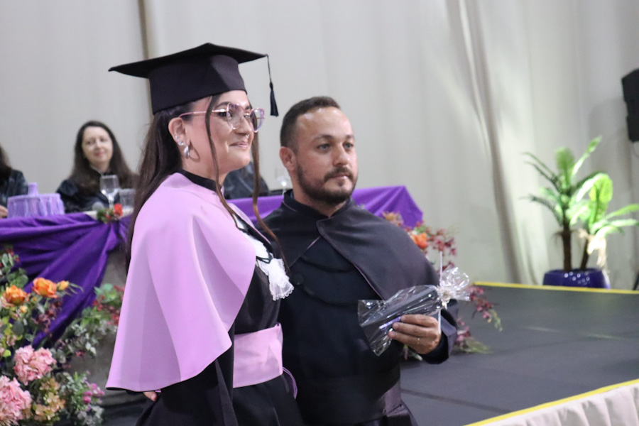 Ao final da cerimônia, os formandos prestaram homenagens aos docentes, oferecendo pequenos mimos em reconhecimento à trajetória compartilhada ao longo do curso. Houve ainda homenagem especial à professora especialista Dirce Aparecida Gimeniz, pelos anos de dedicação ao curso de Pedagogia da UNIFIPA.