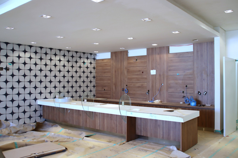 As equipes também estão finalizando a instalação de bancadas em aço inox, granito e sólido mineral nas salas de atendimento e áreas molhadas. “Conseguimos adiantar boa parte da pintura, além da instalação das esquadrias de alumínio, madeira e ferro. Em todos os andares estão em execução os serviços de instalações elétricas, hidráulicas e de aparelhos de ar-condicionado”, informou o engenheiro civil Joni Vizicatto.