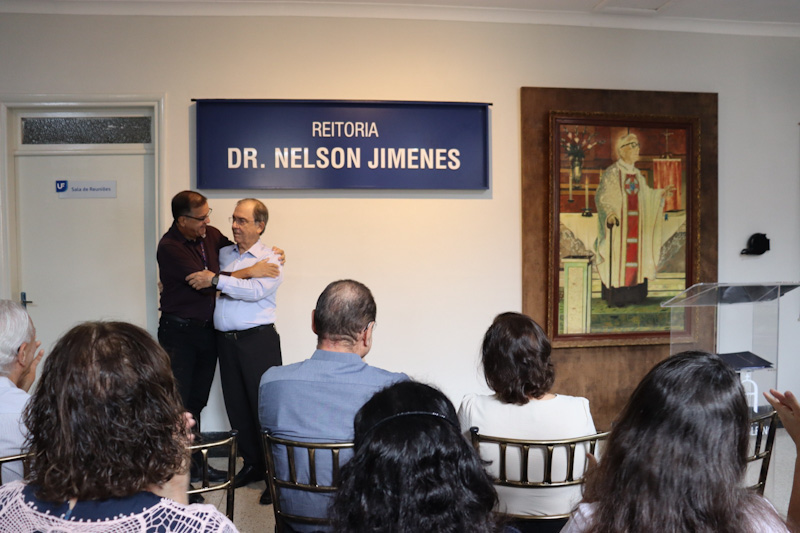 O presidente do Conselho de Curadores, Dr. José Carlos Rodrigues Amarante, lembrou que ingressou na instituição, em 1º de junho de 2000, como voluntário, junto com Dr. Nelson. Amarante destacou a atuação de Jimenes à frente das então Faculdades Integradas Padre Albino e seu papel no processo de crescimento da UNIFIPA, incluindo a implantação de novos cursos e o fortalecimento do curso de Medicina, que projetou a instituição em âmbito nacional. Amarante ressaltou que Dr. Nelson desenvolveu um trabalho fundamental na área da Educação da Fundação Padre Albino. “Esta homenagem é justa e merecida”, finalizou.