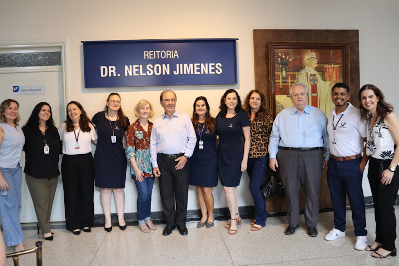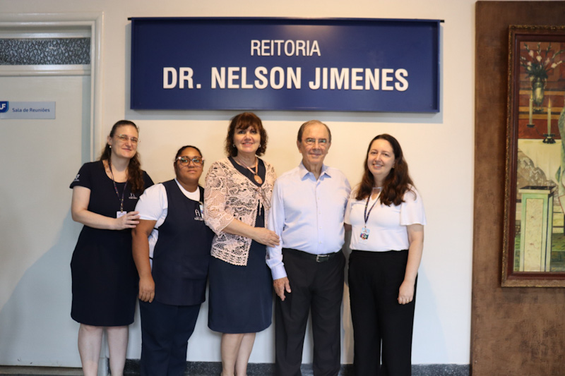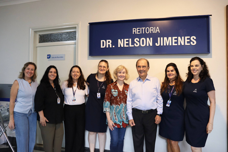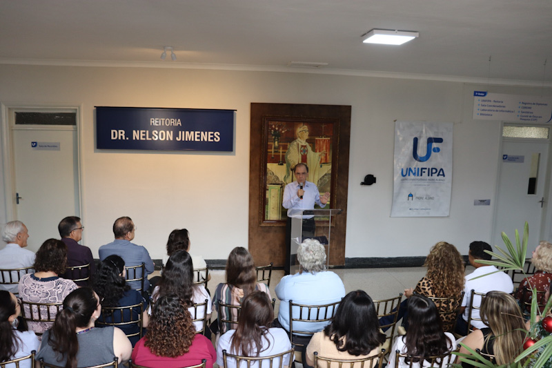 A Fundação Padre Albino, através da Diretoria Executiva, na manhã desta quinta-feira, 18 de dezembro, homenageou o reitor do Centro Universitário Padre Albino/UNIFIPA, Dr. Nelson Jimenes. O espaço administrativo da instituição passou a denominar-se Reitoria Dr. Nelson Jimenes, em reconhecimento à sua trajetória e aos serviços prestados à Fundação ao longo de décadas. A cerimônia contou com a presença de colaboradores, docentes e coordenadores de cursos da UNIFIPA e conselheiros da Fundação Padre Albino.
