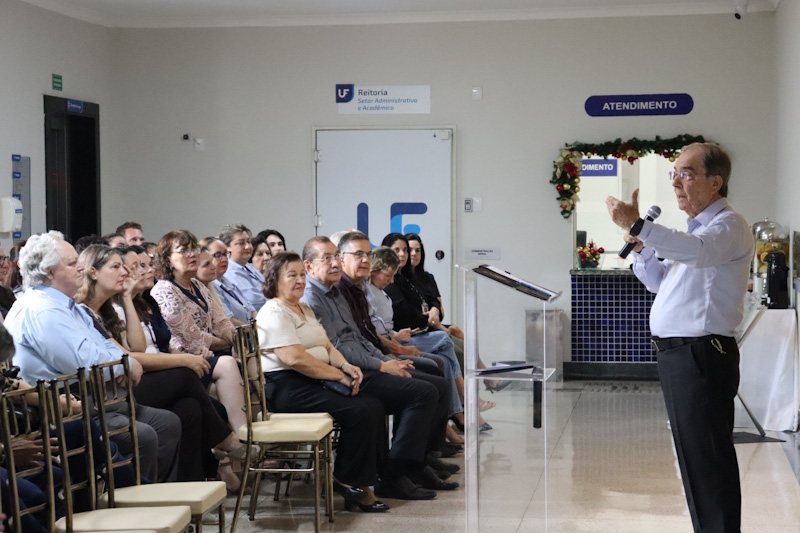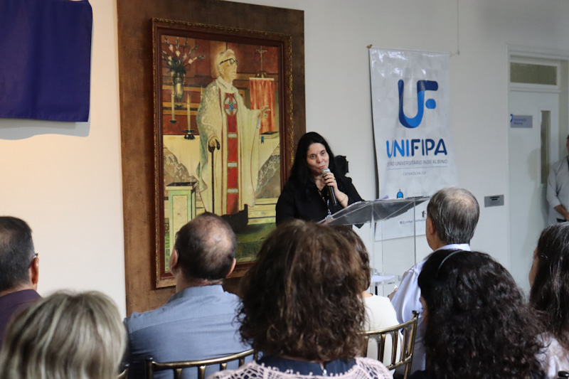 A vice-reitora da UNIFIPA, Cristiane Procópio de Oliveira, ressaltou a trajetória do reitor e sua contribuição para a formação acadêmica e institucional, enfatizando valores como dedicação, coerência, respeito e compromisso com a educação. “Hoje não estamos apenas registrando uma homenagem; estamos eternizando uma história. Uma história construída com coragem, fé, dedicação e uma entrega voluntária rara, daquelas que transformam instituições, vidas e destinos. Foram anos em que sua presença não foi apenas liderança, mas inspiração. Em que cada desafio foi enfrentado com serenidade e firmeza. Dr. Nelson, com o senhor, aprendi que o segredo da vida reside na coerência entre o que se fala e o que se pratica, na compaixão, no equilíbrio, na humildade, na paciência, no respeito a si, aos outros e a natureza, na simplicidade, na solidariedade, na tolerância, na vontade de viver e aprender todo dia. Muito obrigada por tudo e em nome de toda a comunidade acadêmica nosso mais profundo agradecimento”, concluiu Cristiane.