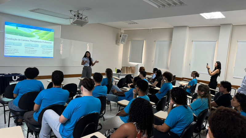 Após a palestra eles participaram de roda de conversa conduzida por dois ex-jovens aprendizes da instituição que foram efetivados – Jessica Lauany da Mata Antonio e Eduardo Jesus Santos Domiciano, que compartilharam suas experiências, desafios enfrentados ao longo da trajetória, aprendizado adquirido e dicas práticas para o desenvolvimento profissional e a inserção no mercado de trabalho. Também participou da roda a coordenadora financeira, Aline Aparecida Ribeiro, que reforçou a importância do jovem aprendiz para a instituição e destacou como a atuação deles contribui de forma significativa para o desenvolvimento dos setores.