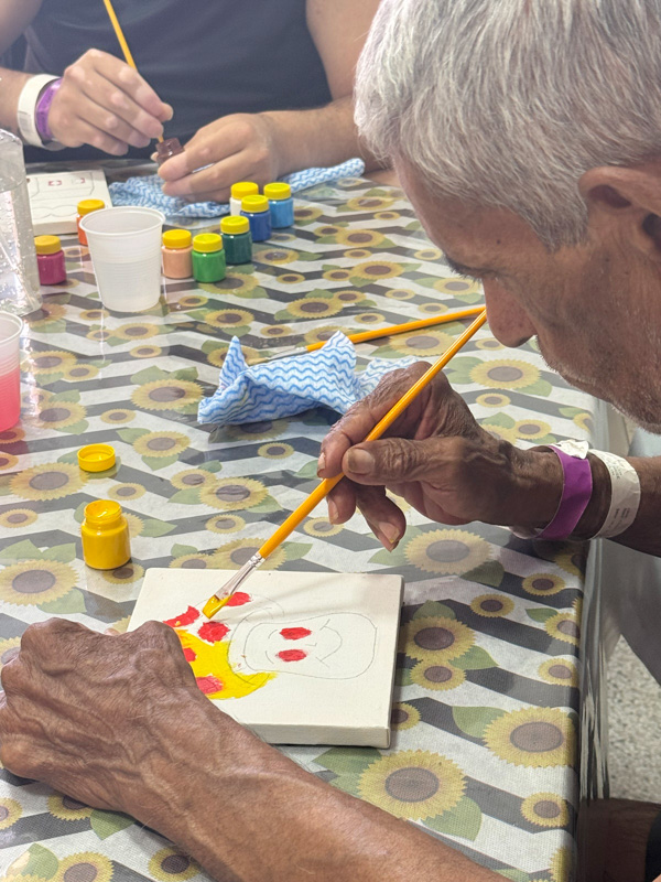 A programação continuou com atividade de pintura, estimulando os sentidos e a coordenação motora, promovendo relaxamento, concentração e expressão criativa entre os pacientes.