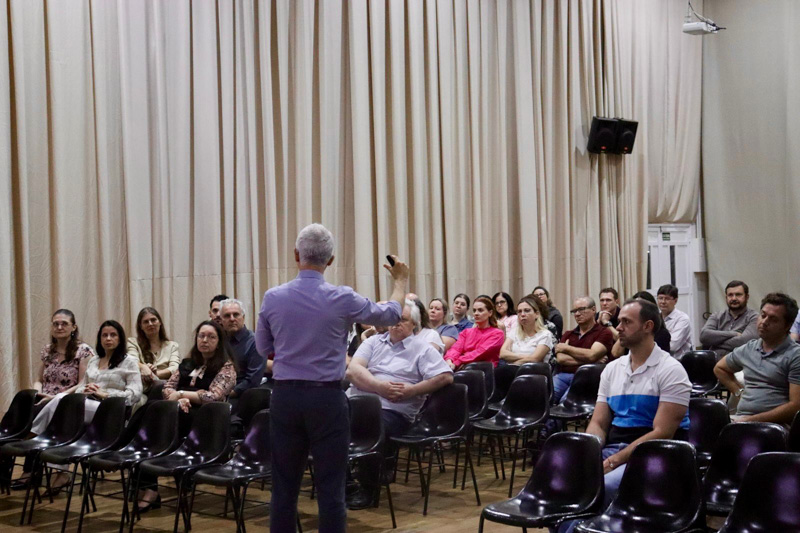 Durante a exposição, o palestrante abordou as transformações promovidas pela revolução digital ao longo do tempo e os impactos da inteligência artificial (IA) na educação superior, especialmente nos processos de aprendizagem, avaliação e docência. Nicolini destacou como a tecnologia pode ser utilizada de forma estratégica por instituições de ensino superior, propondo reflexão sobre o repensar de cursos e programas com base em metodologias de gestão da aprendizagem e em projetos sinérgicos de ensino. O especialista também discutiu o atual cenário do Exame Nacional de Desempenho dos Estudantes (ENADE) e seus resultados, relacionando-os à importância de práticas pedagógicas inovadoras e alinhadas às novas demandas educacionais.