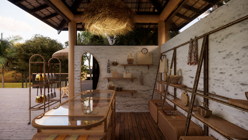Criado especialmente para essa experiência, o layout da pop-up combina madeira, bambu, palha, fibras naturais e texturas orgânicas, respeitando a beleza própria de cada material. Em sintonia com a arquitetura do hotel, o espaço se integra de forma leve e espontânea ao fluxo do resort, transformando a descoberta da pop-up em um momento natural e autêntico.
