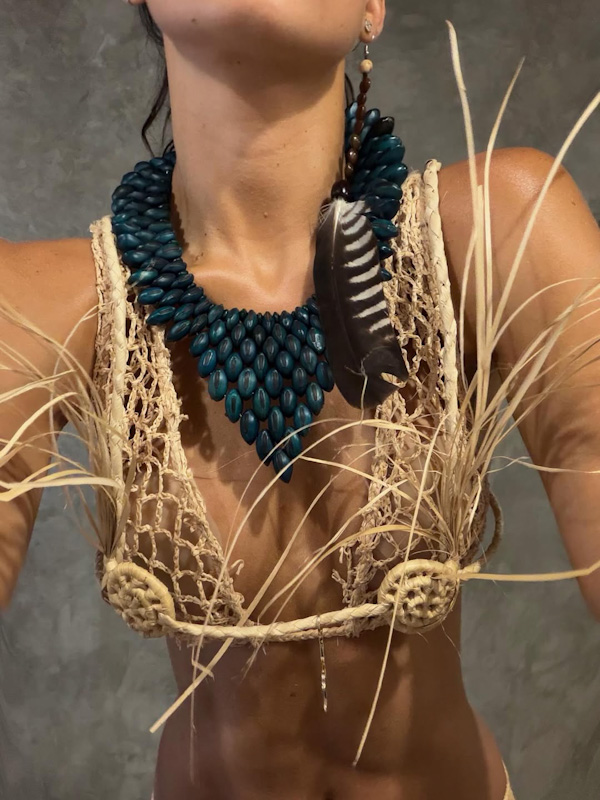 O artesanal ganhou ainda mais protagonismo com uma peça Misci em crochê, reforçando a valorização de técnicas manuais, e com o biquíni de pedras Amir Slama, desenvolvido em colaboração com a própria Livia, um encontro entre design, identidade e olhar contemporâneo.