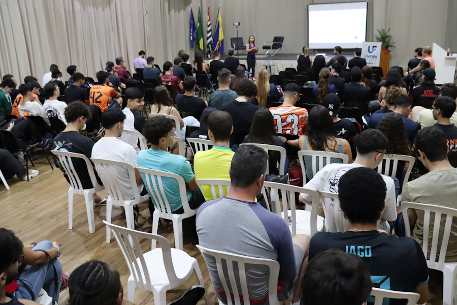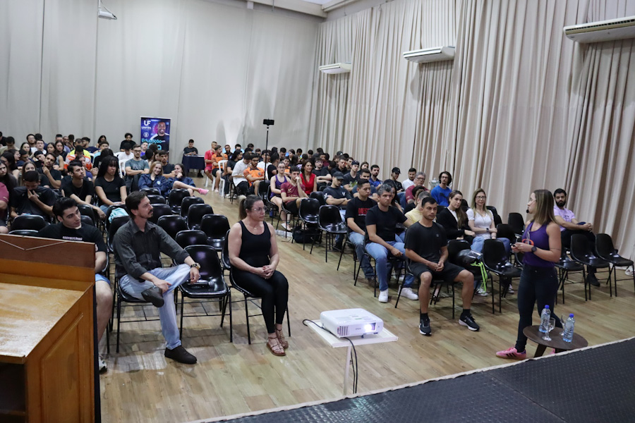 ‘Corrida de Rua’ foi tema da palestra de encerramento da 7ª edição da Semana da Educação Física da Unifipa, realizada no campus sede da instituição nesta quinta-feira, 4 de setembro. A atividade final teve a participação da maratonista e personal trainer Profa. Esp. Ana Paula de Souza, também instrutora do grupo de corrida Aprunning. O público presente foi formado por alunos e docentes do curso, além de praticantes e entusiastas da corrida de rua.