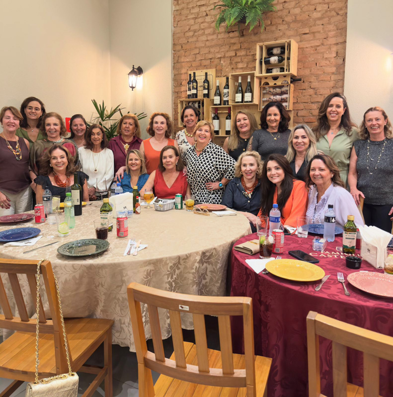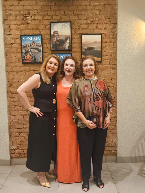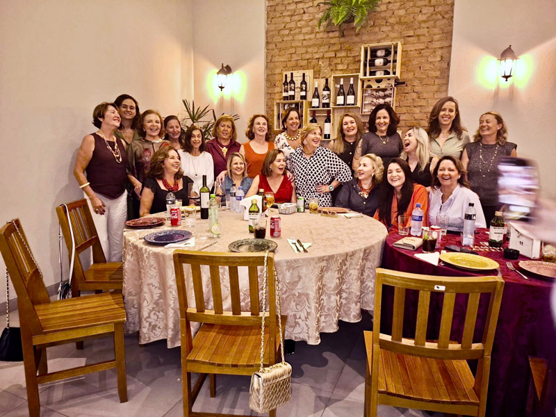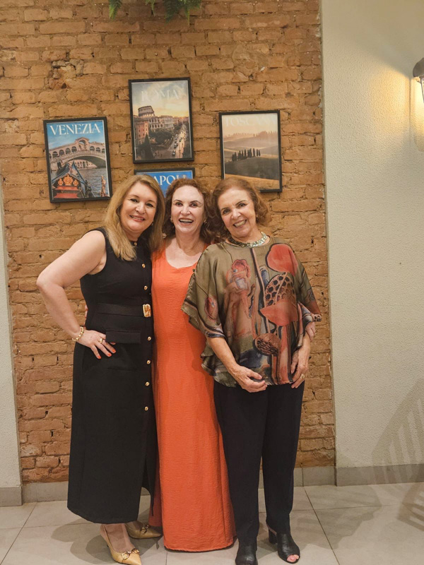O encontro ficou para depois do carnaval, e eu estava tranquila: carinho verdadeiro não tem data. Minha preciosa Cristina Ruete me convidou para ir à pizzaria Famiglia Castellana; pensei em uma noite simples, mas ao chegar vi, do lado de fora, uma mesa enorme só de mulheres. Falei com a Cris: “Olha, está rolando uma festa — nossa aquela moça parece a Néia Garutti”. Ao entrar, a surpresa: eram essas amadas amigas de Rio Preto ali para celebrar comigo! A sensação foi de tremor, emoção, vontade de chorar e um aperto no peito tão doce quanto inesperado.
