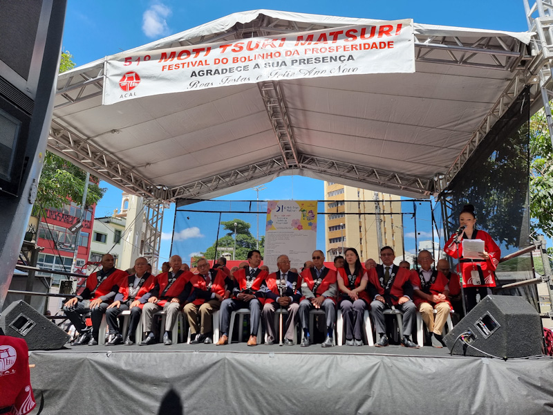 A programação terá início às 9 horas, com a distribuição dos motis, seguida pela abertura oficial com a tradicional cerimônia xintoísta às 10 horas, reforçando o caráter espiritual e cultural da celebração. O festival também terá uma demonstração do ritual tradicional do moti tsuki, no qual a massa de arroz é socada com martelos de madeira dentro de um pilão, em um ritual coletivo, que simboliza união e renovação.