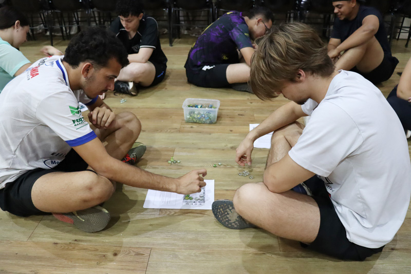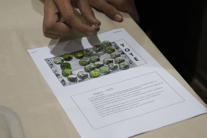 Sob coordenação do professor Me. Fernando Azeredo Varoto, a programação trouxe jogos de tabuleiro e cantigas populares de diferentes partes do mundo, destacando a importância cultural e educativa dessas práticas, como o Yoté (África Ocidental), o Pong Hau K’ (China) e o jogo da Onça, de origem indígena brasileira, praticado antes da colonização portuguesa. “O jogo da Onça é um exemplo vivo da riqueza cultural indígena como parte de suas atividades lúdicas. Consiste em um jogador representando uma onça e o outro uma matilha de cachorros, com o objetivo da onça de caçar os cães e o dos cães de encurralar a onça. Isso estimula o raciocínio lógico, a estratégia e a inteligência, sendo utilizado em atividades educativas para apresentar a cultura popular e indígena para crianças”, explicou.