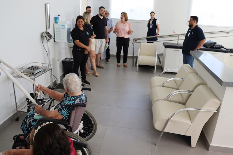 Após a entrega da doação, o Dr. Alex e sua equipe foram convidados a conhecer de perto o trabalho desenvolvido com as pessoas idosas institucionalizadas no Recanto. A visita incluiu os apartamentos e a ala de fisioterapia da instituição, recentemente reformulada por meio de recursos próprios, doações e repasses, reforçando o compromisso com a qualidade do atendimento oferecido e importâncias das parcerias.