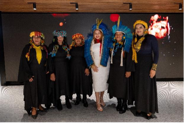 A noite também marcou a chegada da exposição ao calendário paulistano e reforçou o protagonismo da produção indígena feminina no contexto da feira. Como parte da programação, os convidados participaram de uma breve vivência na cultura das mulheres Jenipapo-Kanindé, com cânticos e sons que remetem à vida e à importância da floresta, ampliando a conexão entre o público e as narrativas presentes nas obras.