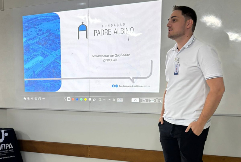 Encerrando o encontro, Gabriel Titoto, coordenador médico das Unidades de Urgência e Emergência do Hospital Padre Albino, apresentou o Diagrama de Ishikawa, ferramenta utilizada na análise de causas. A exposição trouxe exemplos práticos de aplicação, evidenciando como o método pode contribuir para a identificação de fatores que impactam os processos e para a implementação de melhorias.