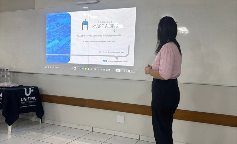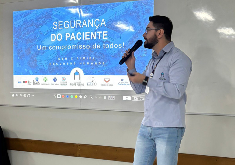 Durante a programação, Deniz Simiel, coordenador de Desenvolvimento Humano Organizacional da Fundação Padre Albino, conduziu reflexão voltada às lideranças, abordando aspectos como empatia, conscientização e engajamento das equipes no fortalecimento da cultura de segurança. Na sequência, Gisele Moraes da Silva, coordenadora da UTI do Hospital Emílio Carlos, destacou a importância da notificação de eventos adversos como instrumento essencial para identificar falhas, reduzir a subnotificação e aprimorar a assistência prestada.