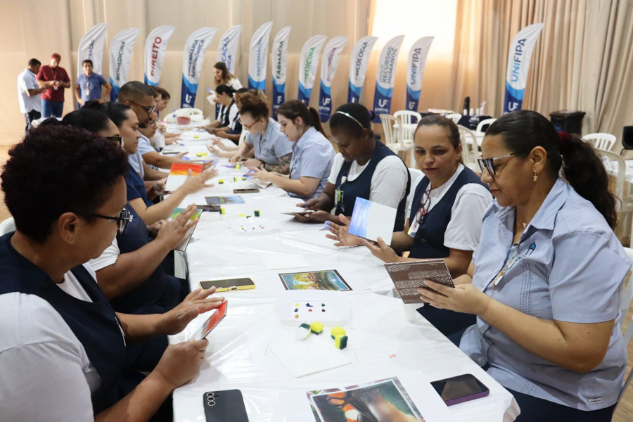 Durante a atividade, o representante do SESC, Renato, destacou a relevância de ações culturais no ambiente corporativo, ressaltando que a arte contribui para o bem-estar, a convivência e o desenvolvimento pessoal.